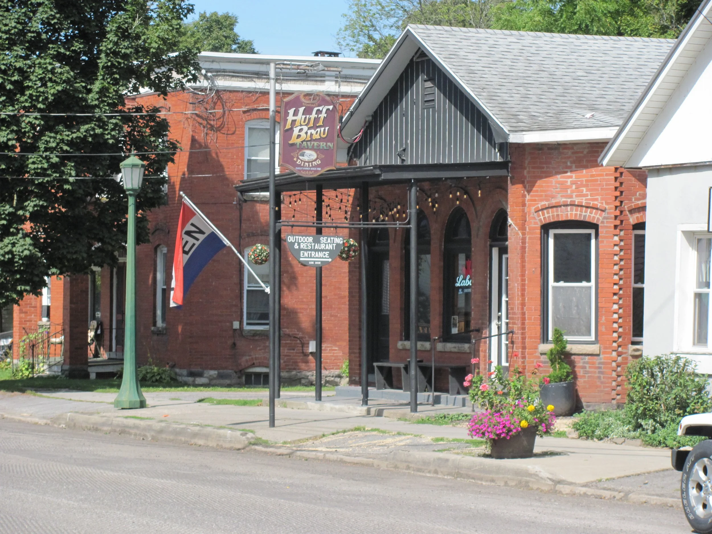 In 2021, the PCD assisted Madison County in receiving $225,000 from the NYS Main Street Grant Program to rehabilitate underutilized properties in downtown Earlville. The funding was awarded to four owners of commercial and mixed-use properties. The Madison County Department of Planning worked with the awardees to complete their projects. Pictured here are 1-9 N Main St., a mixed-use commercial building, and The Huff Brau (4 W Main St.) a popular restaurant and spot for live music, before and after facade and interior improvements.